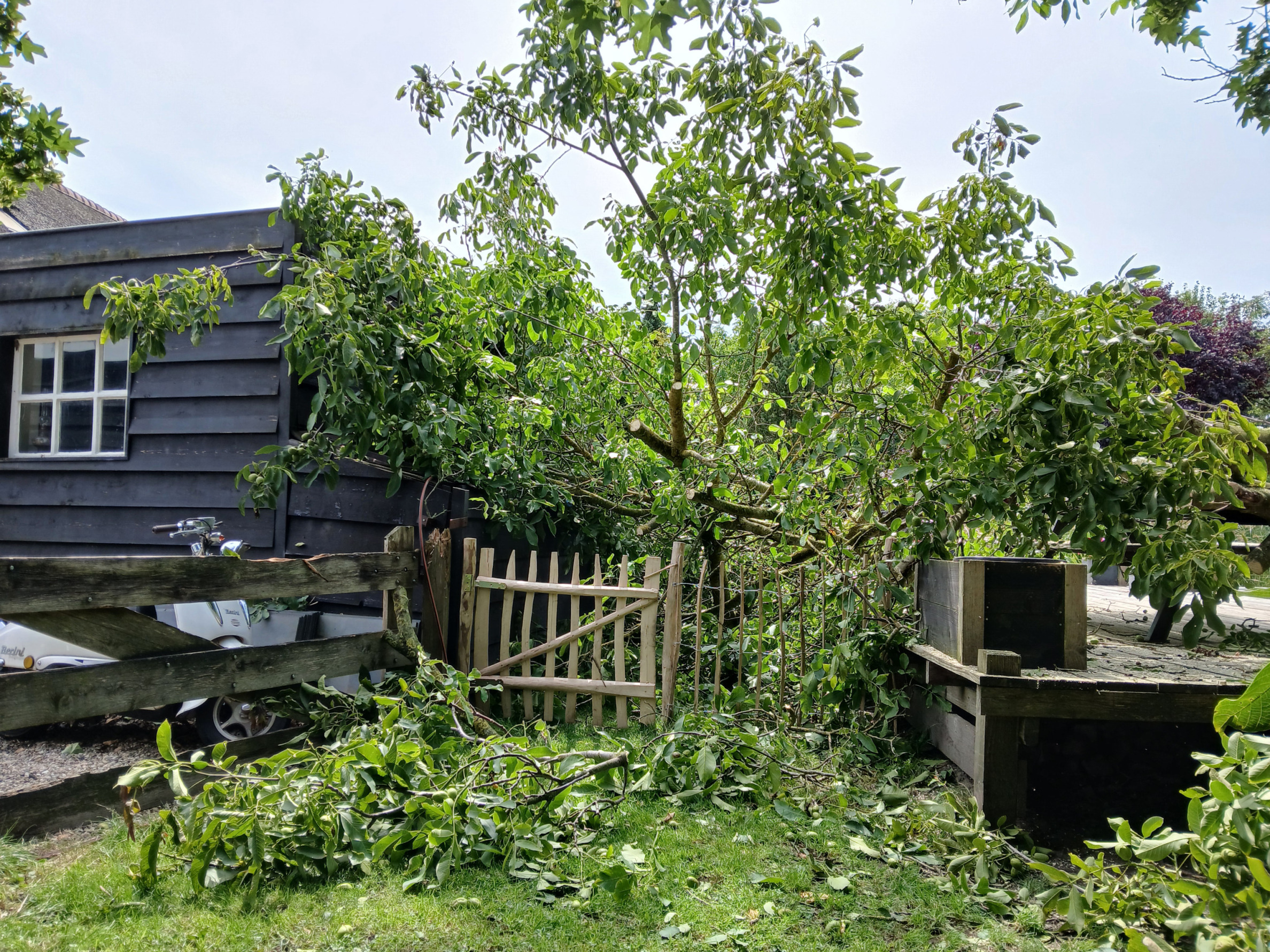De ravage nadat de notenboom