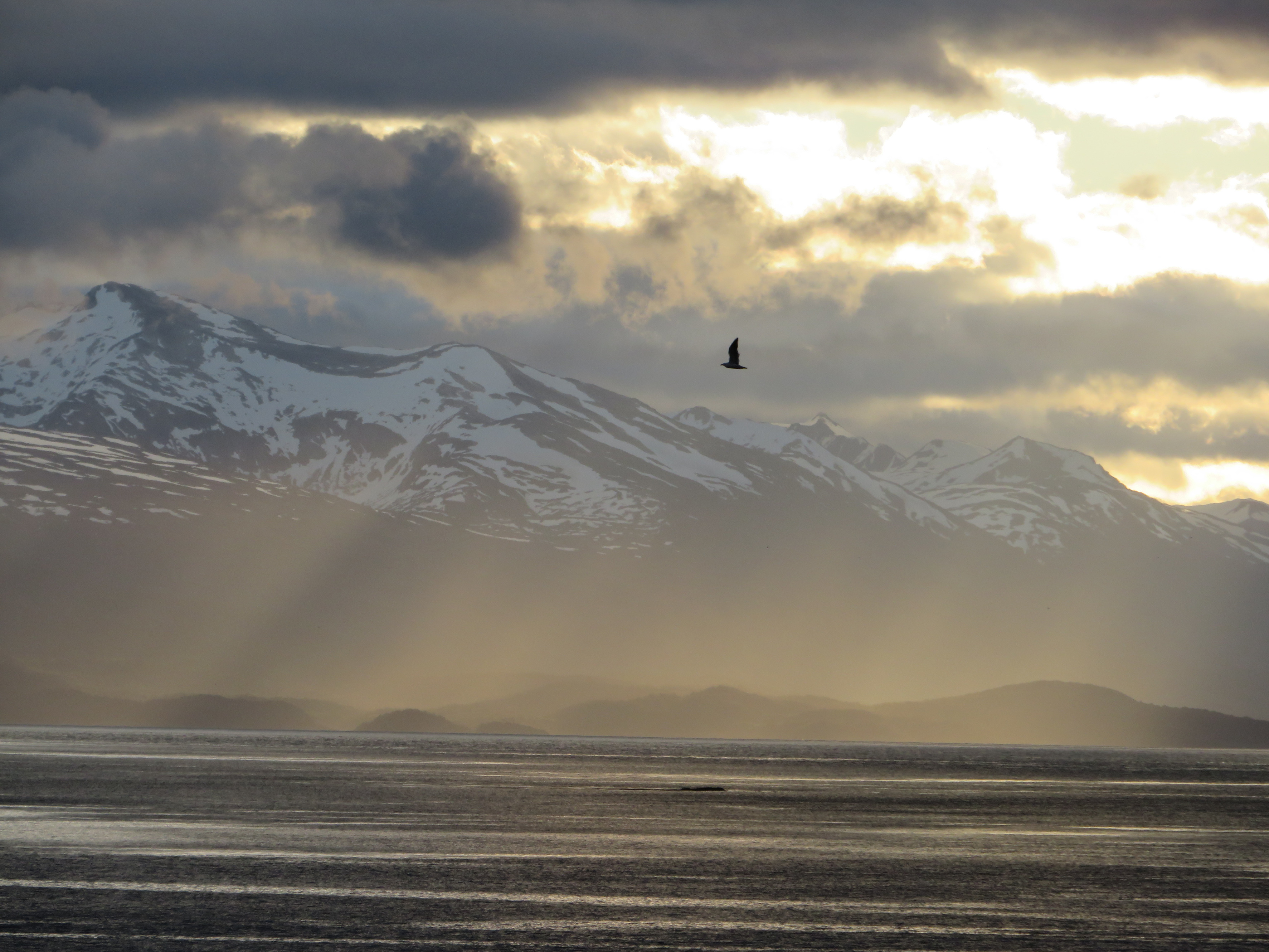 Daarom doe ik er maar een foto extra bij, want het samenspel van het licht, de wolken, de zee en de bergen maakt fotograferen tot een must, waarbij je op de koop toe neemt, dat je handen verstijven en dat de camera wel eens wat nat zou kunnen worden… Daarbij kan je door de wind de camera ook nauwelijks stil houden…