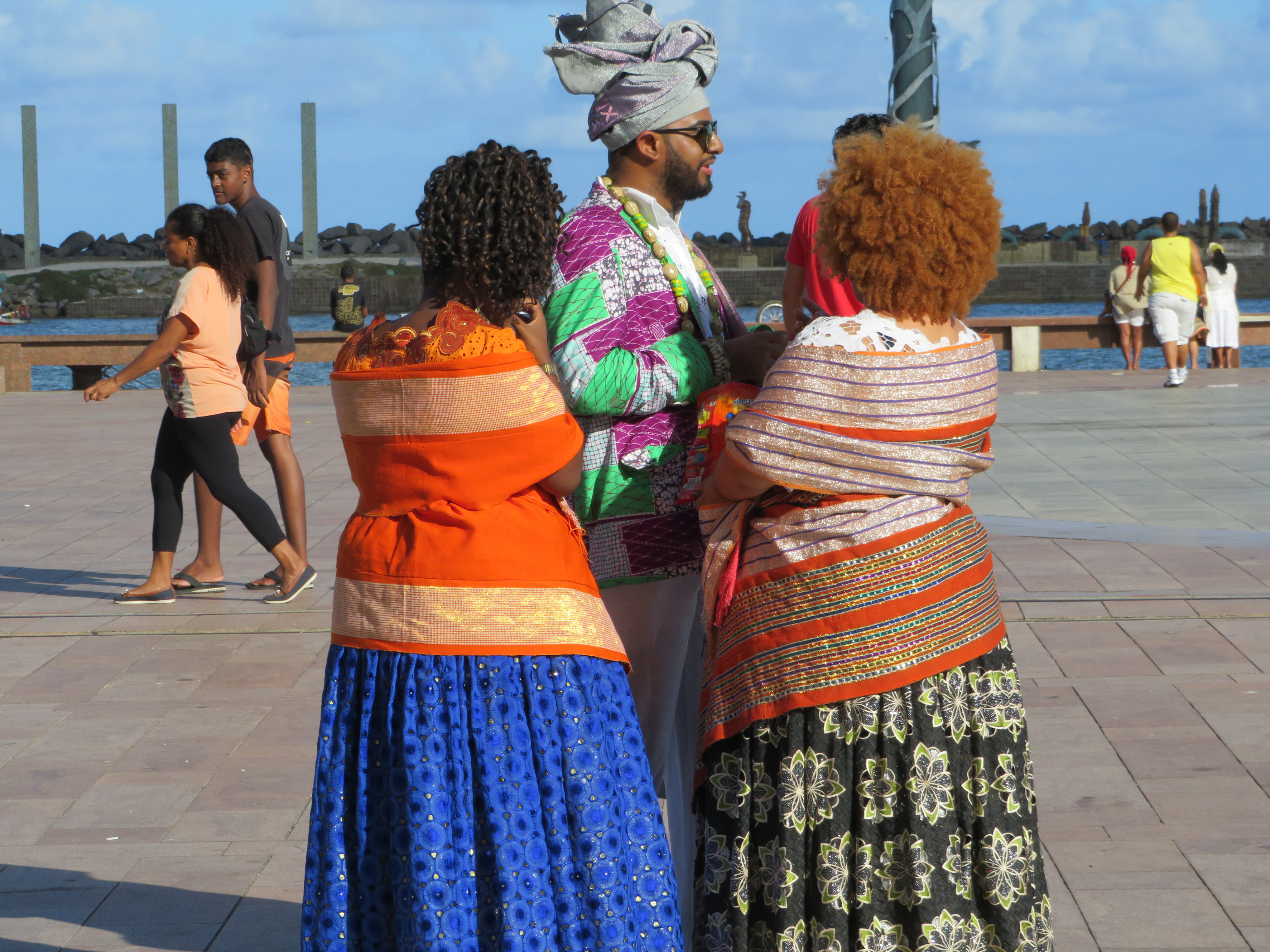 Morgen Recife in Brazilië.. Van 1630 tot 1654 heette Recife Mauritsstad, omdat in die periode de Nederlanders dit gebied in bezit hadden. In die tijd werd hier ook de eerste synagoge van Noord en Zuid-Amerika gesticht door Amsterdamse Joden. In 1654 werd het gebied weer Portugees en vluchtten de hier wonende Joden deels terug naar Amsterdam en deels naar Nieuw Amsterdam, het latere New York… Vlakbij Recife ligt Olinda op een heuvel; in beide steden hebben we het centrum bezocht. Hiernaast een kerk met wat vergane glorie met de prachtige, maar wat hoogdravende naam Igreja de Sao Salvador do Mundo… Na Olinda, dat op de werelderfgoedlijst van de Unesco staat, kwamen we in het centrum van Recife terecht in een bijeenkomst met prachtig geklede mensen: een demonstratie van tolerantie naar een Afrikaans geloof met animistische trekjes. Wat precies dat geloof of die bijeenkomst inhield, kan ik je niet exact vertellen, daarvoor was het gesprek met een slecht Engels sprekende Braziliaanse radio-verslaggeefster te moeizaam… Na een bezoek aan de synagoge “Sinagoga Kahal zur Israel” liepen we terug naar de Aidacara…