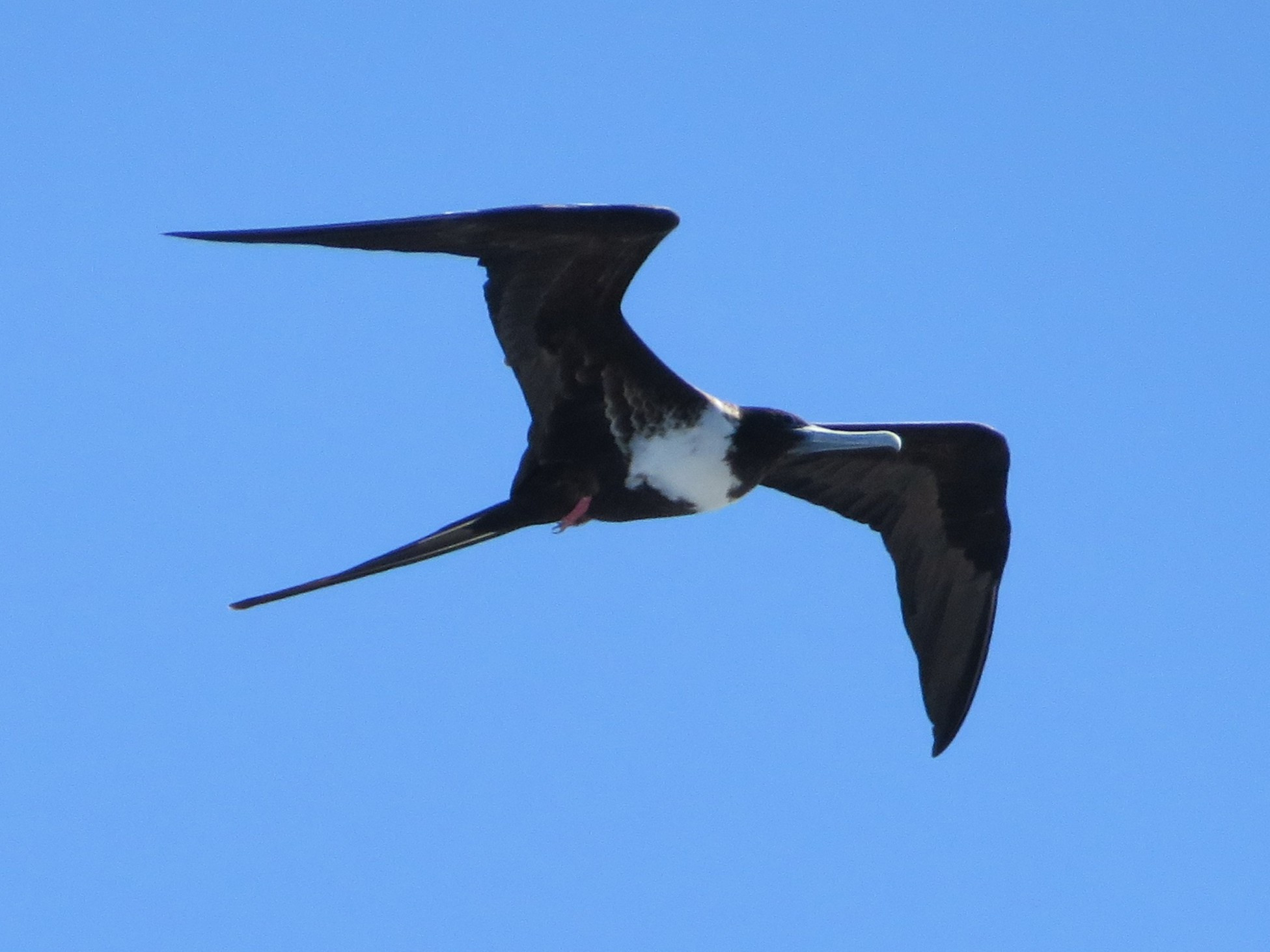 Rond het schip vliegen, nu we wat dichter bij Zuid Amerika komen, fregatvogels en Jan van Genten.